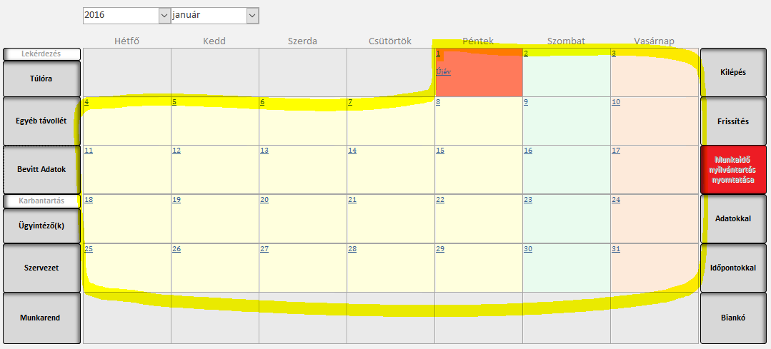 A kiválasztott év/hónap adott napjára (sárgával jelölt terület) kattintva megjelenik az adatbeviteli űrlap.
