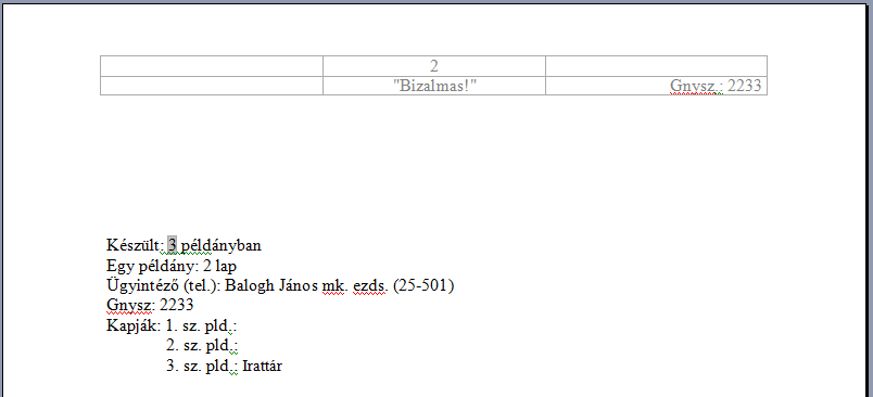 A Gnysz. - megadását követően - valamennyi oldal jobb felső sarkában rögzítésre kerül.