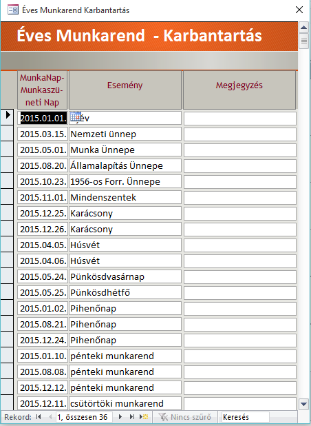 A program egyik legfontosabb eleme, hiszen adott elfoglaltság időtartamának pontos kiszámítása csak a munkanapok, munkaszüneti napok meghatározását követően lehet.