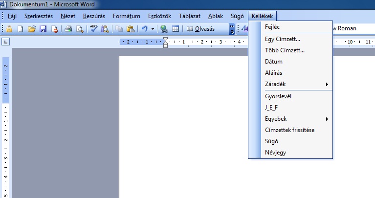 Ezt követően bármely Word dokumentum megnyitásakor a menüsorban megjelenik egy "Kellékek" menüpont, az alábbi ábrán látható menüsorral.